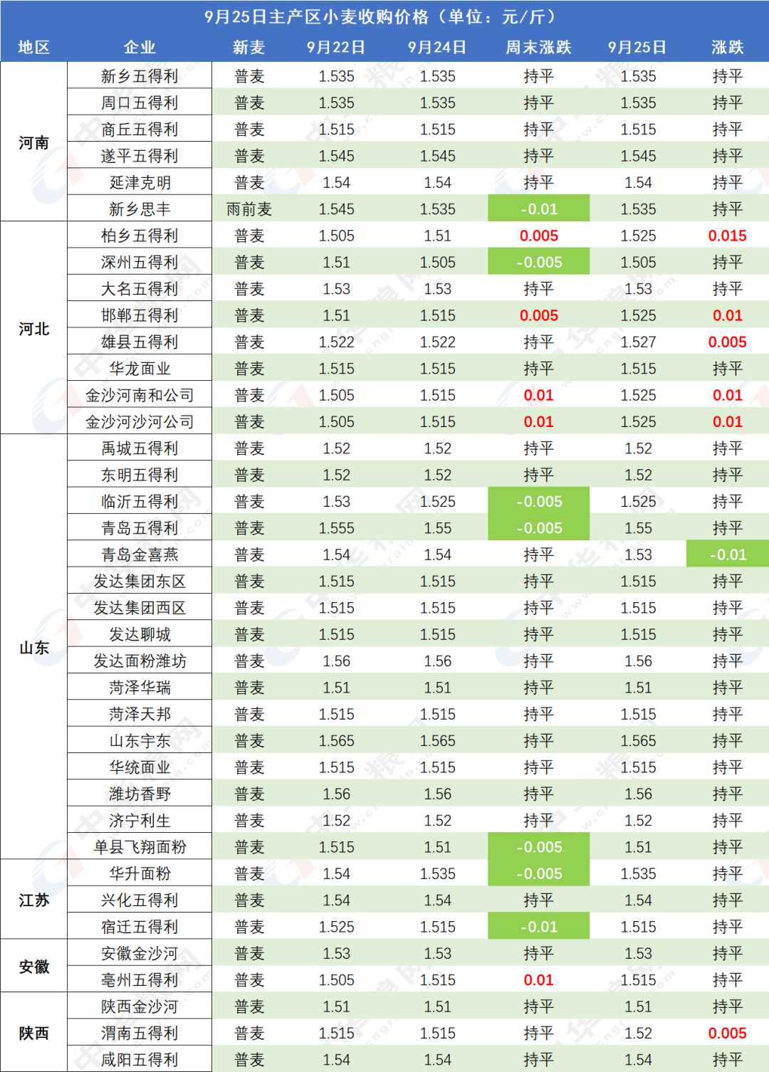 图1:9月25日主产区小麦收购价格